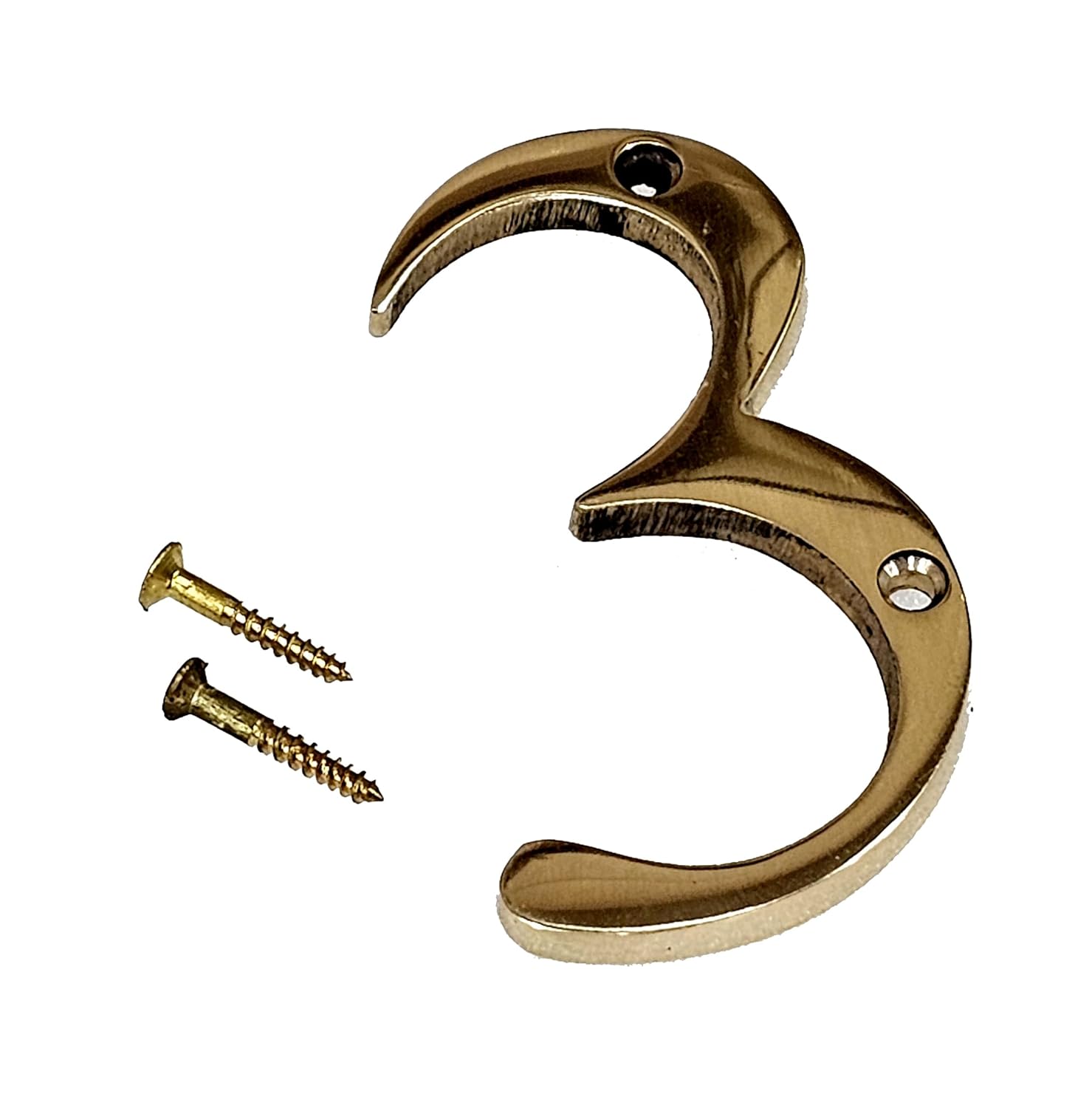 eSplanade 3" Brass House Hotel Door Number Plaque – Numeric Numerical Digit Sign for Home Office Hotel Guest House – Polished Brass Finish with Screws