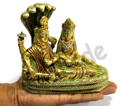 ESPLANADE Brass Vishnu Laxmi in Ksheer Sagar - Lakshmi Narayan - Murti Idol Statue Sculpture - Golden - 3.1" Inches