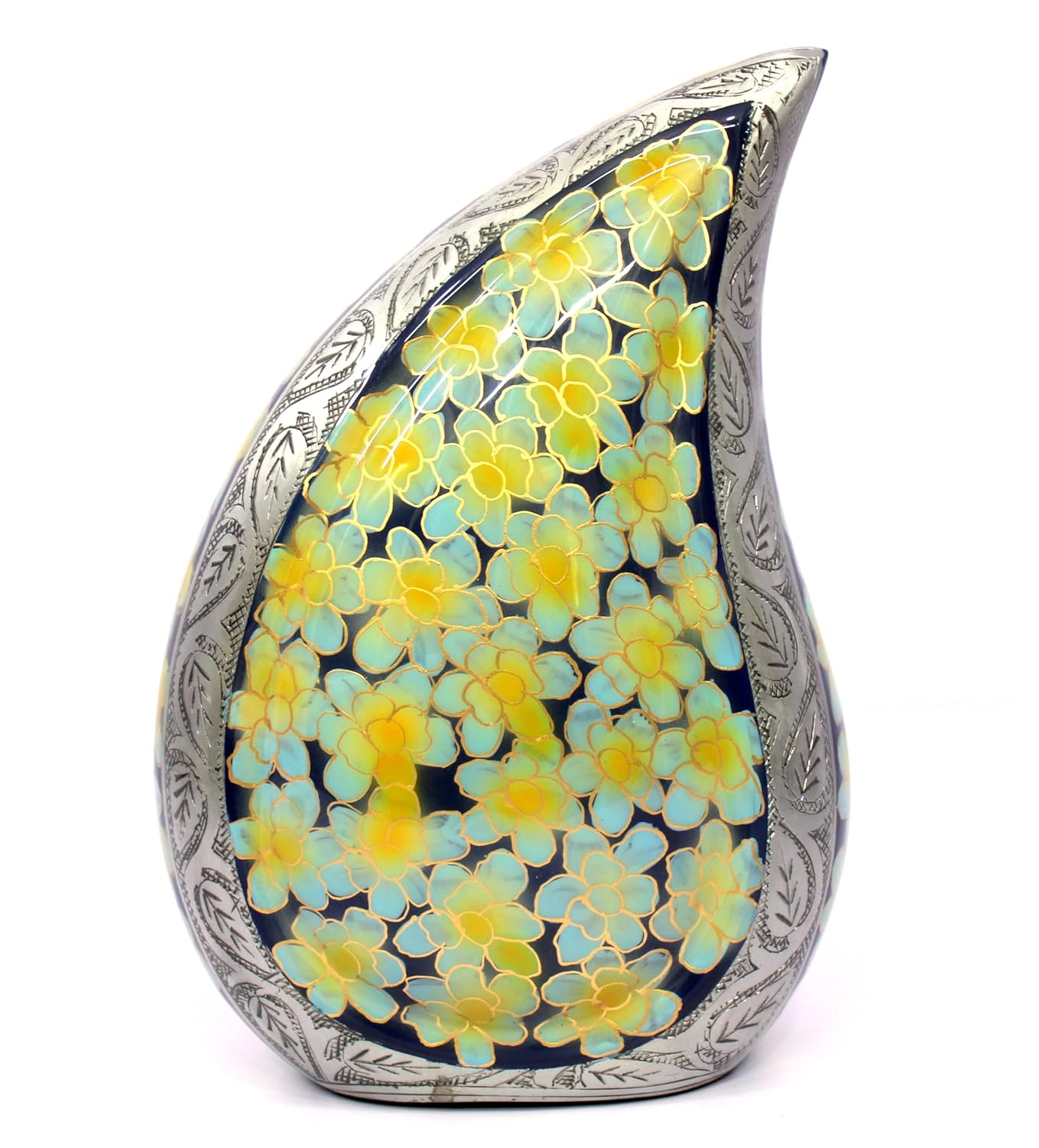 eSplanade Cremation Urn Memorial Human Ashes Container Jar Pot | Burial Funeral Urns | Teardrop Shape Green Flowers - 10 Inches