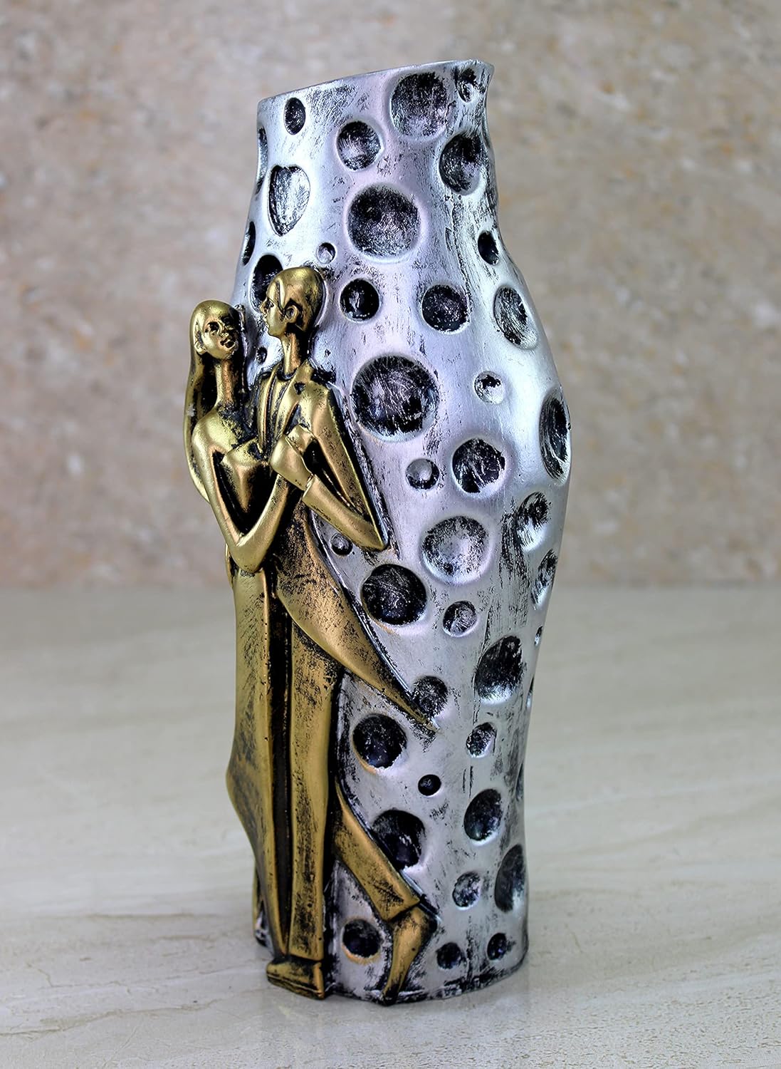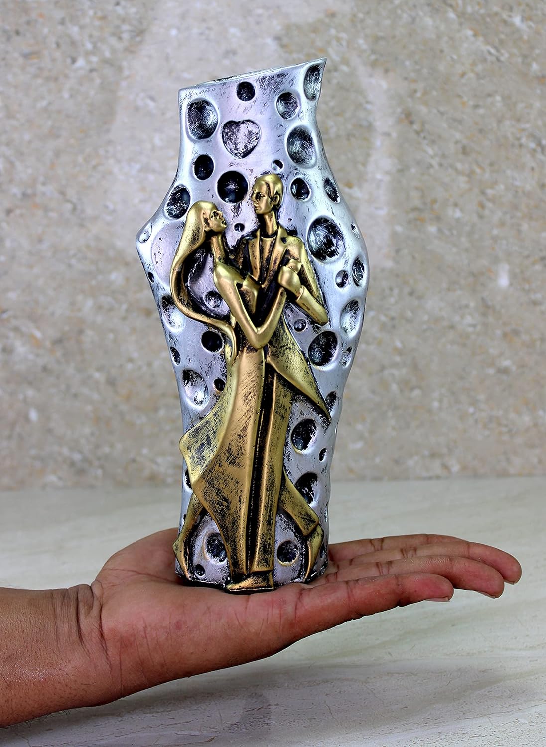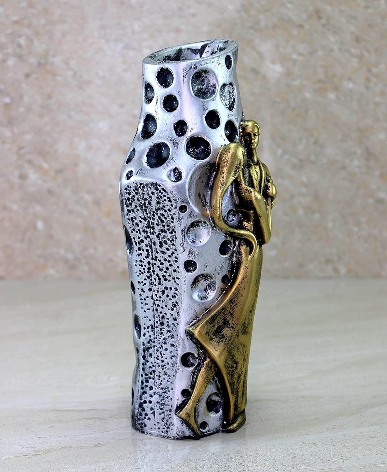 eSplanade Flower Vase Flower Pot Holder Decorative Showpiece - Home Decor - Resin - Copper-Grey - 9.5" Inches