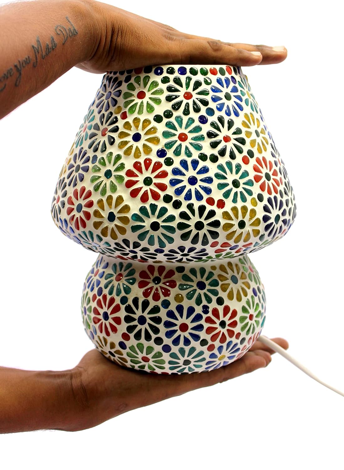 ESPLANADE Glass Decorative Table Lamp | Bedside Lamp | Reading Light | Christmas Lights | Home Decor - Multicolour - 9.75" Inches (Height)