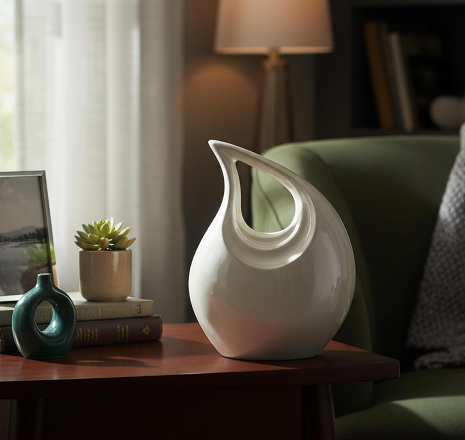 eSplanade Metal Cremation Urn Memorial Jar Pot Container | Full Size Urn for Ashes Funeral Burial | Teardrop Urns | Grey & white- 10" Inches