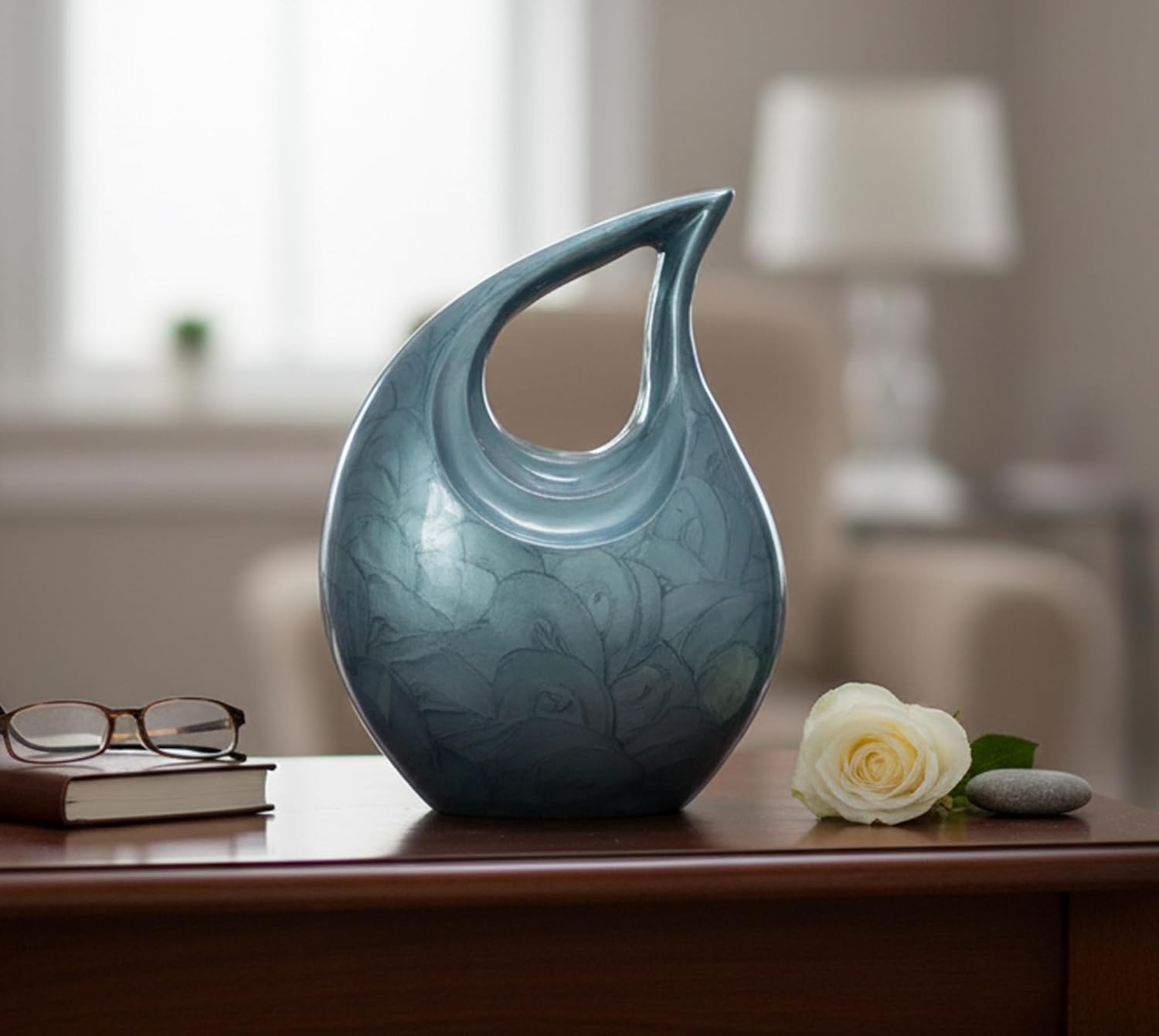 Forever remembrance / memorial classic Cremation Urns - this elegant and superior quality Full Size Teardrop Urn is made to keep the remains of your loved one with all due respect. Urns are designed to hold a significantly adequate amount of remains. This is a durable & sturdy urn and will give a new home to the dearly departed. Personalized urns are a wonderful way for families to show their respect to the pure souls they cherished. These classic cremation urns made of metals like Brass & Aluminum are beautifully hand-crafted and polished with luster. We offer a wide array of cremation urns for ashes; you can select an urn that suits your style. eSplanade has one of the biggest collections of urns and keepsakes available on Amazon. Please refer to photos of this product displaying a collection of 100+ urns or search "esplanade urns" on Amazon.