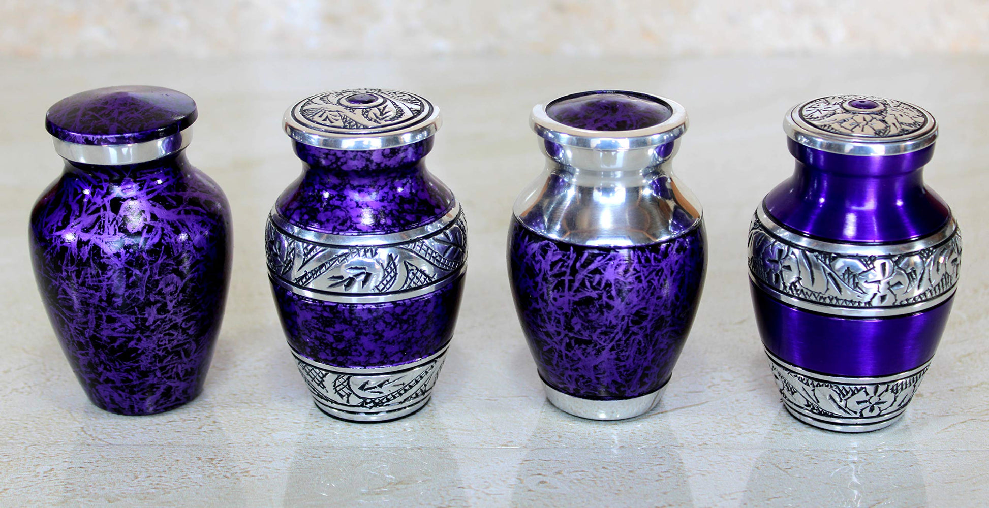 eSplanade- Cremation Mini urn Keepsake Memorial | Set of 4 Small urns for Ashes Funeral Burial Container jar Pot (Silver Carved)