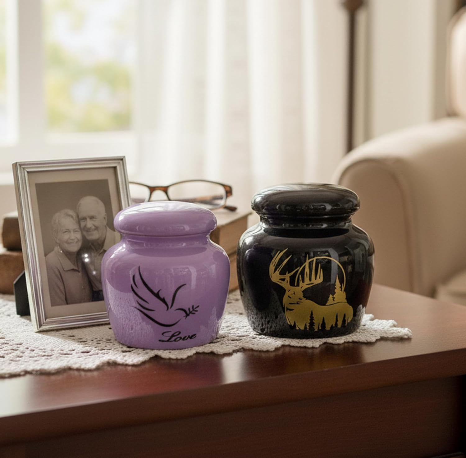 eSplanade Metal Mini Cremation Urn Keepsake Memorial Jar Pot Container | Small Urn for Funeral Ashes Burial | Printed Metal Keepsake