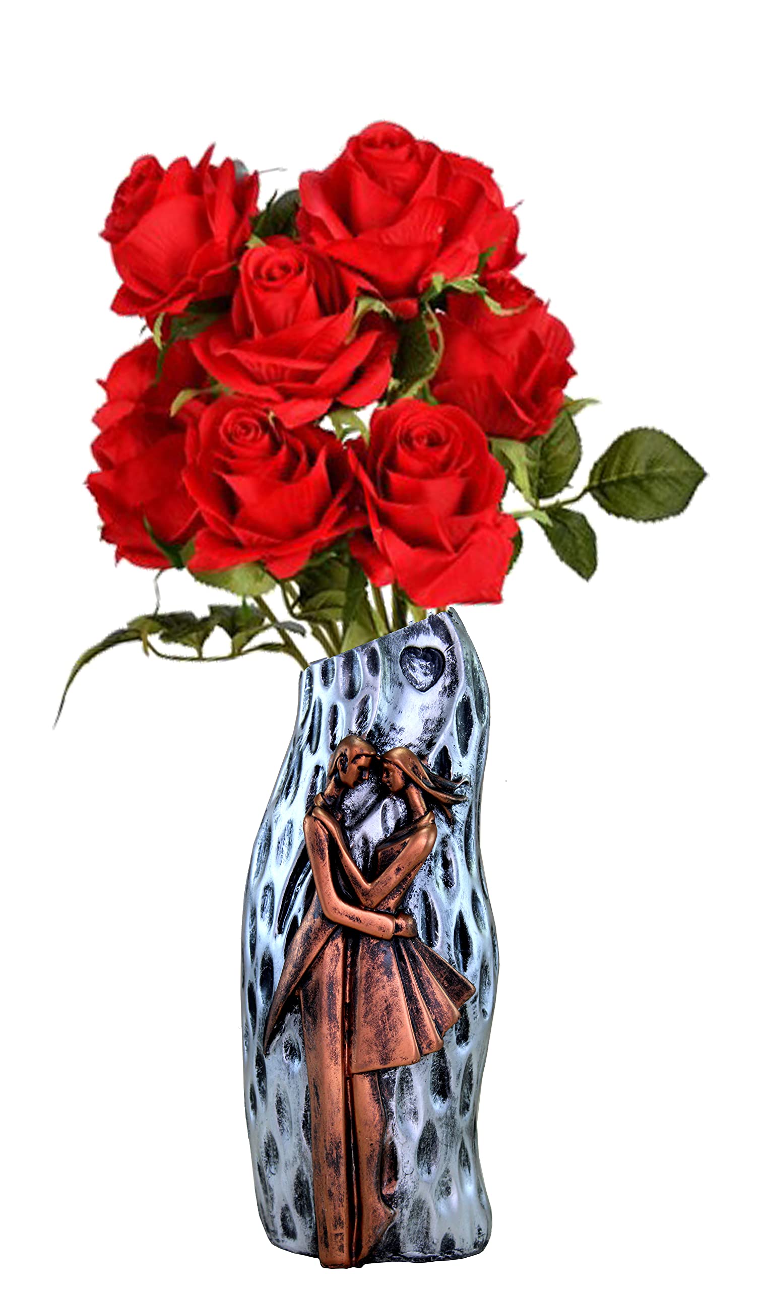 eSplanade Resin Flower Vase Flower Pot Holder Decorative Showpiece - Home Decor - Copper-Grey - 9.5" Inches