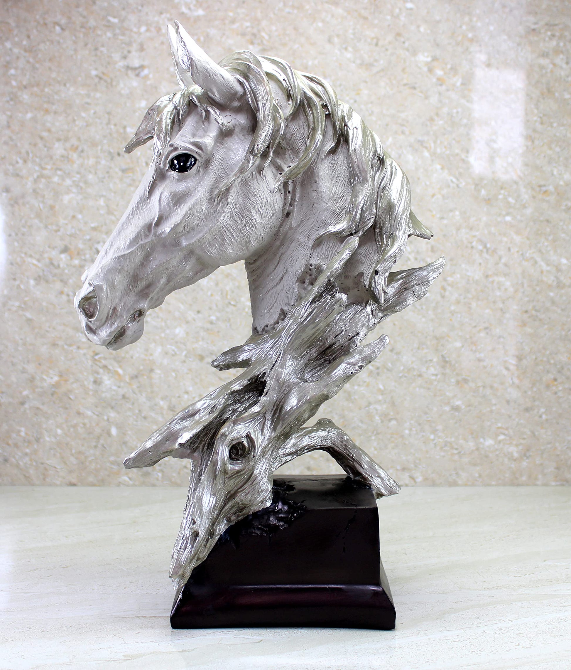 eSplanade Resin Horse Head Sculpture Showpiece for Home Decor Fengshui Good Luck Figurine - 15.5" Inches Big Size