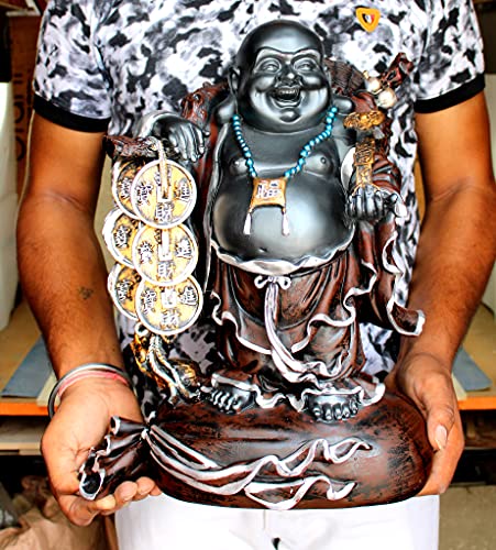 eSplanade Resin Laughing Buddha Statue | Feng Shui Figurine Showpiece for Living Room Home Office Decoration and Gift - 16" Inches (Big Size) (Black)