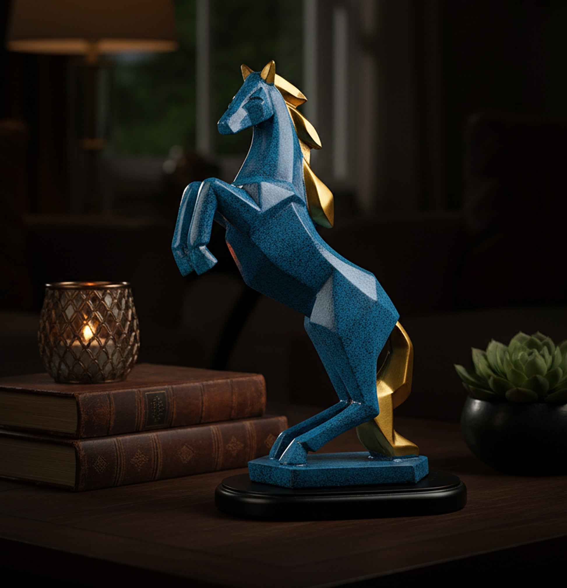 eSplanade Resin Uplifted Legs Horse Rearing Horse Standing Horse Showpiece Sculpture Figurine - Blue - 12" Inches