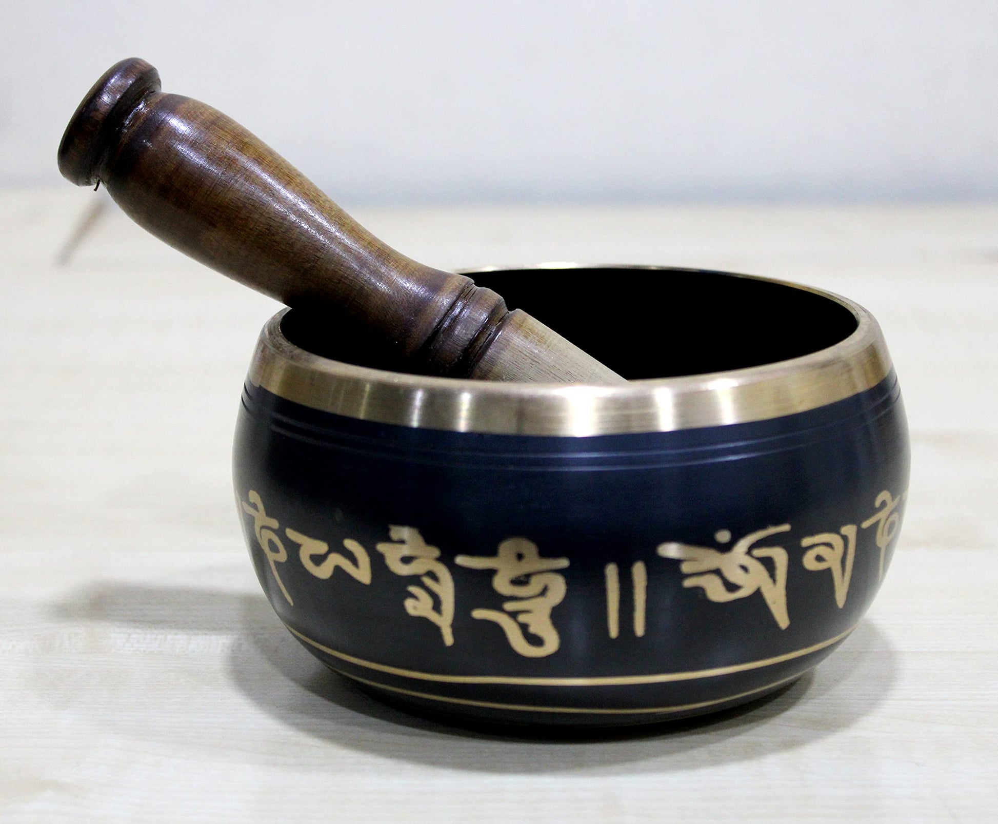 eSplanade - Tibetan Buddhist Singing Bowl Prayer Instrument with Striker Stick | OM Bell | Om Bowl | Meditation Bowl | Music Therapy (Black) 4,5,6 Inches