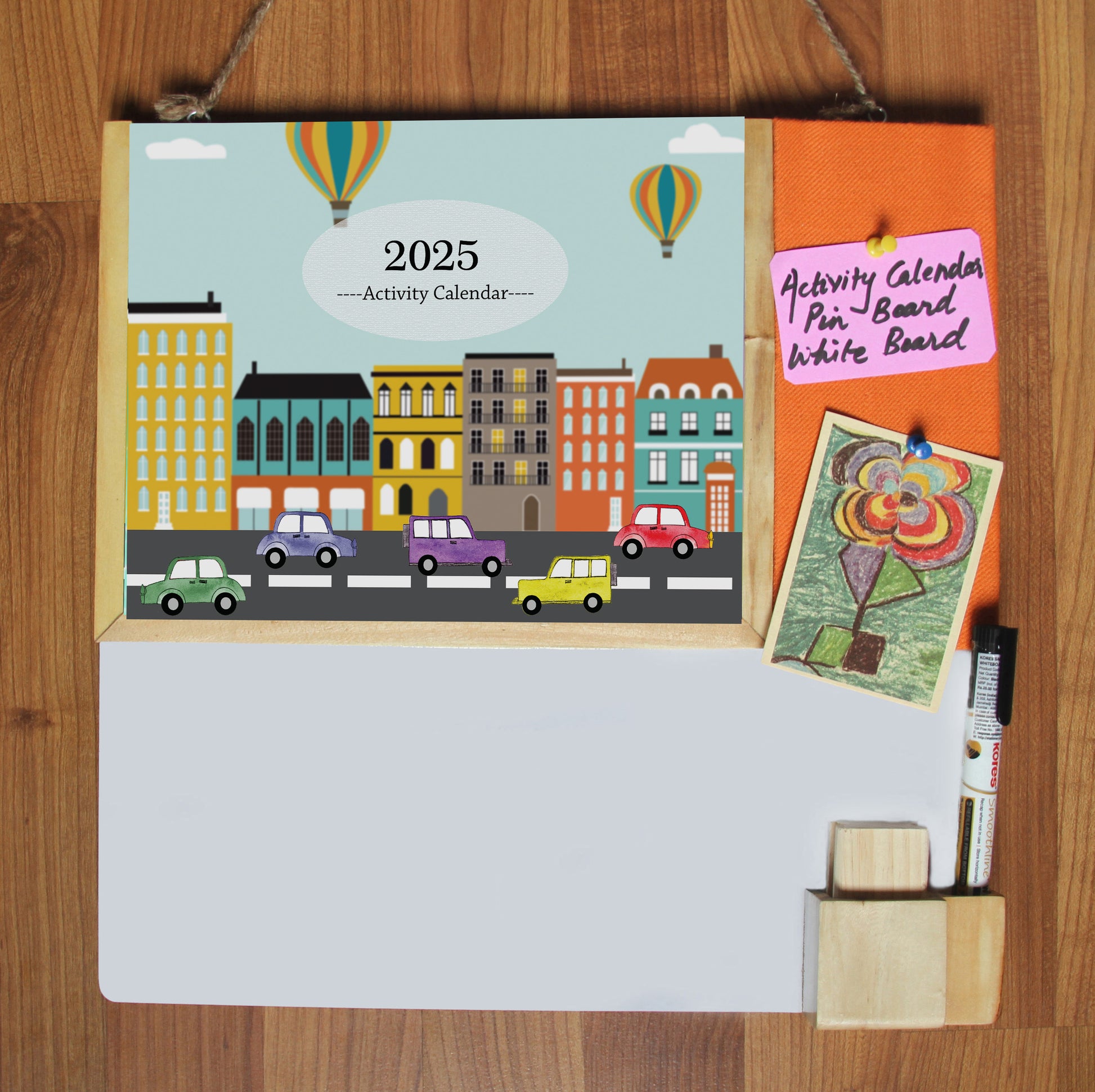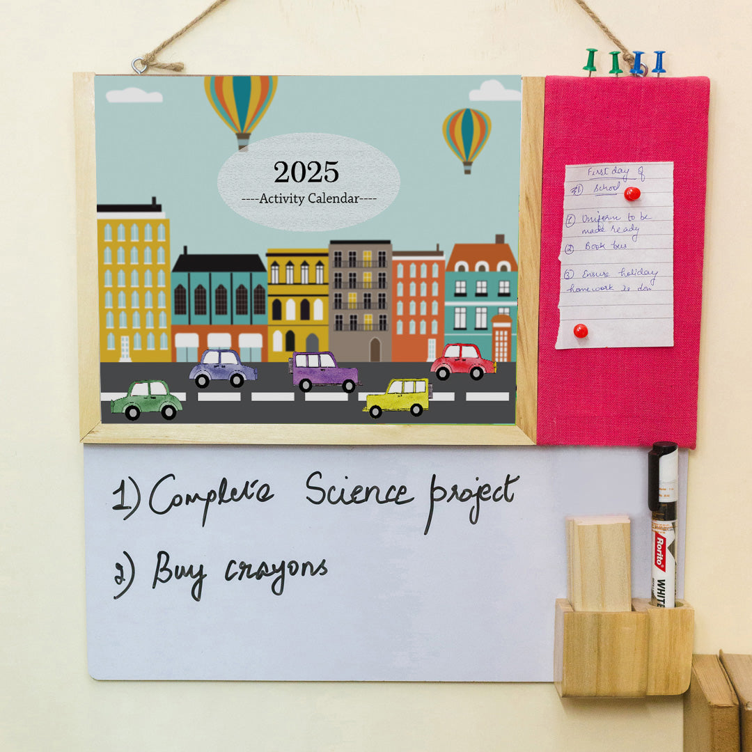 IVEI Kids Activity Calendar with Whiteboard & Pin Board - Combination Board Hanging Wall with Calendar Set with Marker & Duster Holder - Innovative Gift for Kids Room Decor, School, Home - Blue