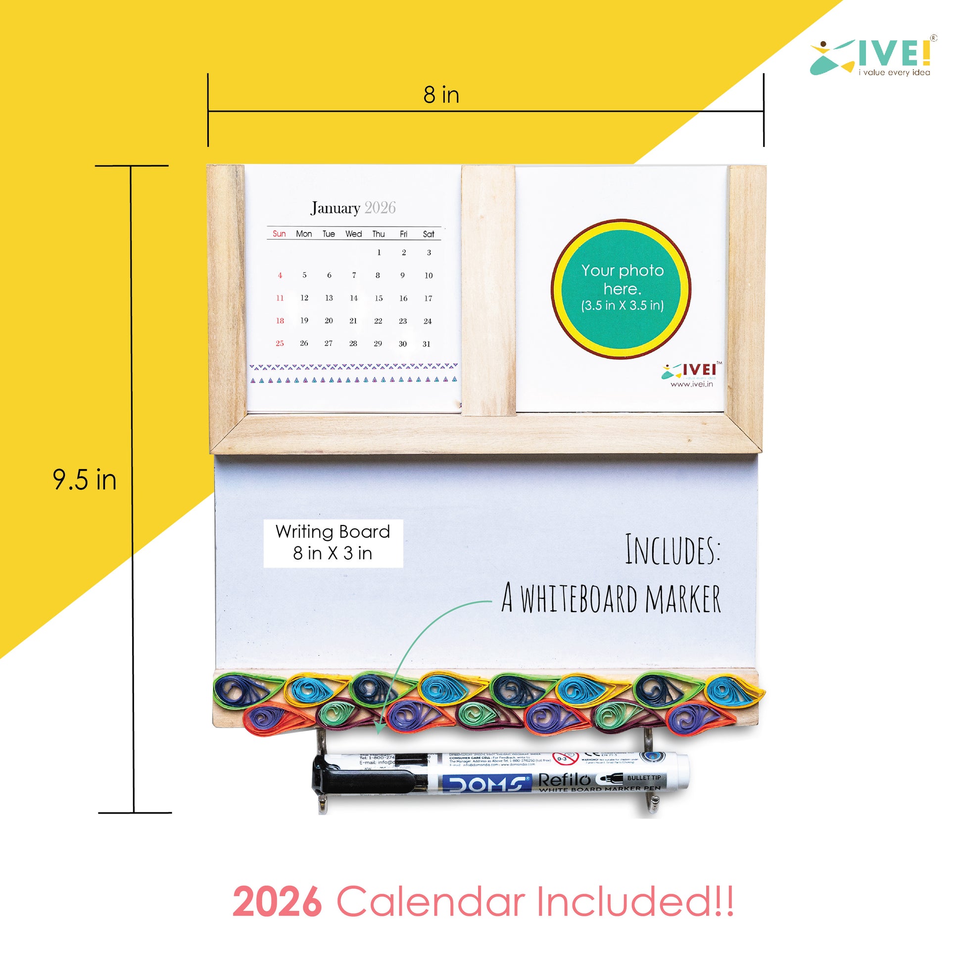IVEI Utility Fridge Magnet with White Board, Mini Warli Calendar and Photo Frame, Paper Quilling on Wooden Frame - Daily Planner Magnet for Fridge with White Board - Best Gift for Home & Kitchen