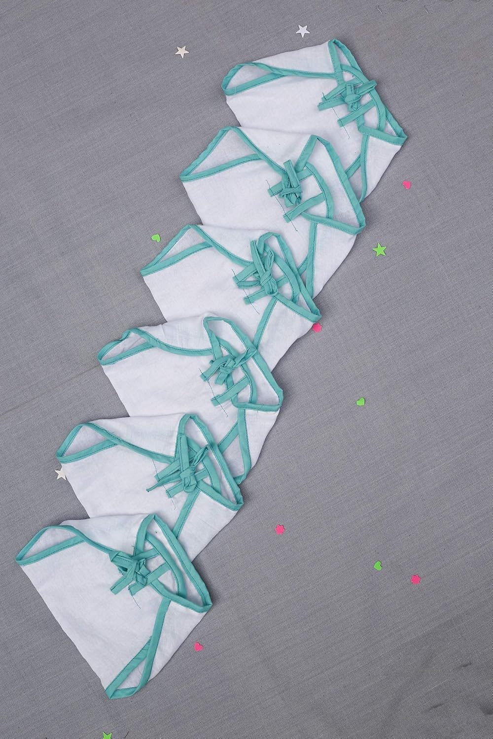 - SET OF 6 NAPPIES:Each set comes with 6 nappies with strings on either side to adjust according to each babies comfort.