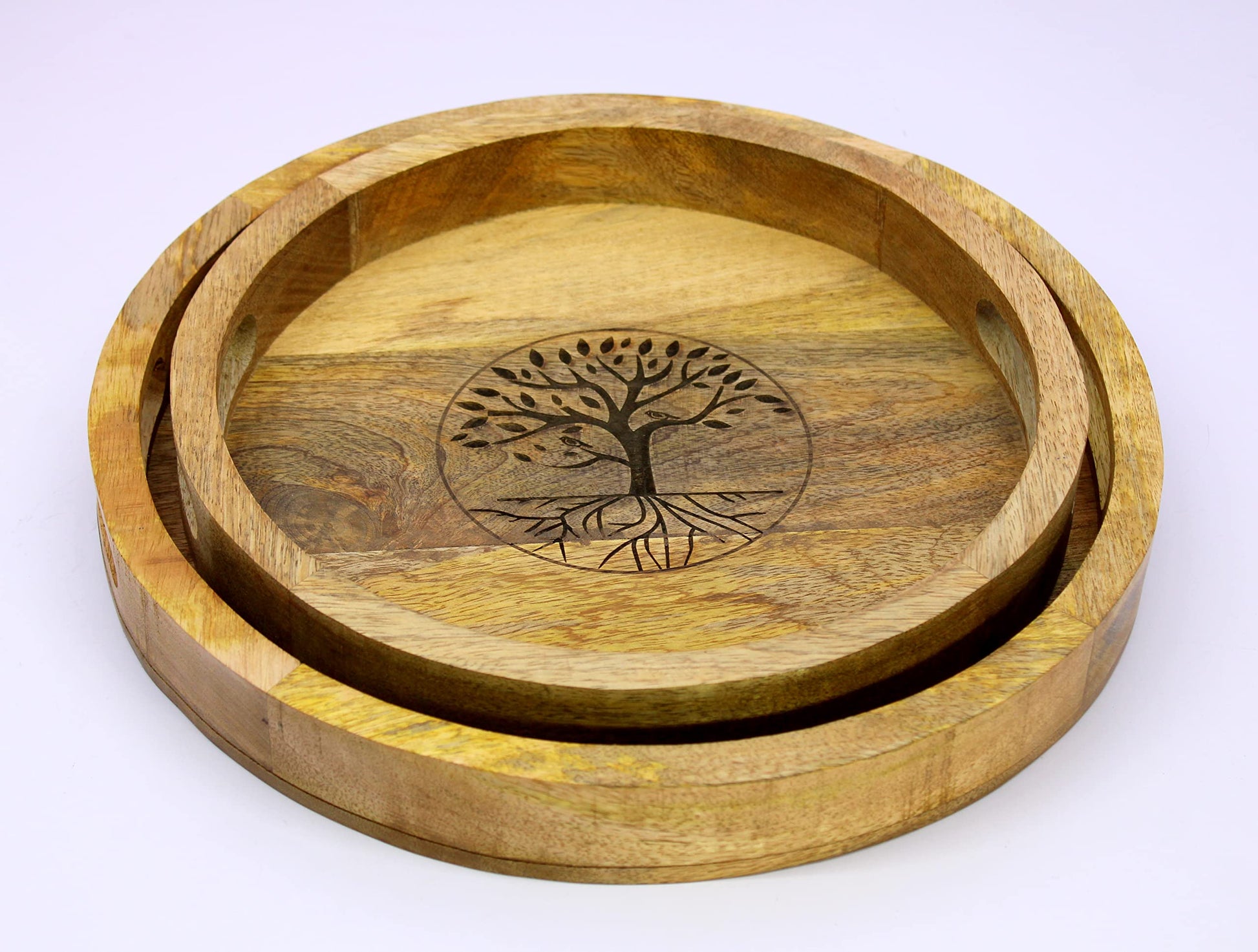 - KLEO Home Decor Range - Set of 2 - Handmade Decorative Tray set made from Wood.