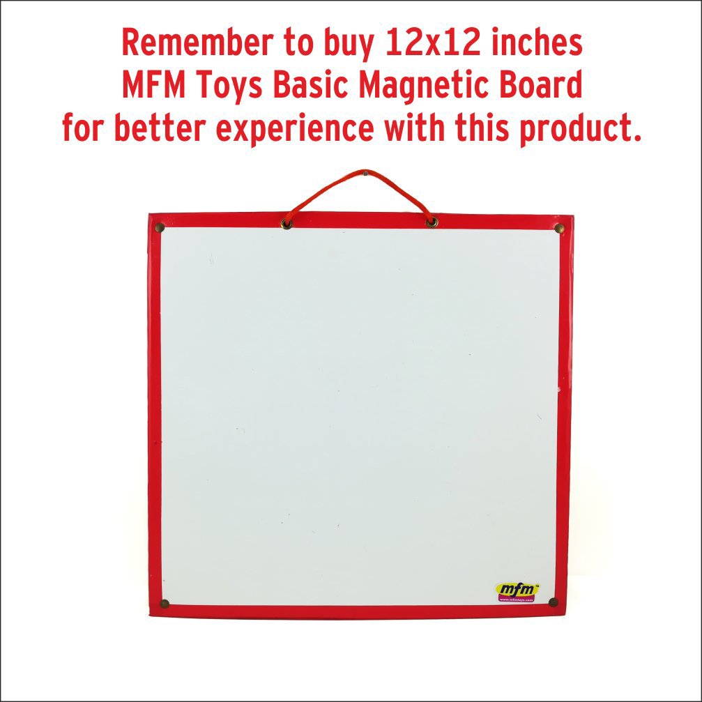 - Remember to buy 12x12 inches MFM Toys Basic Magnetic Board for better experience with this product. http://www.amazon.in/dp/B0744JHR9R