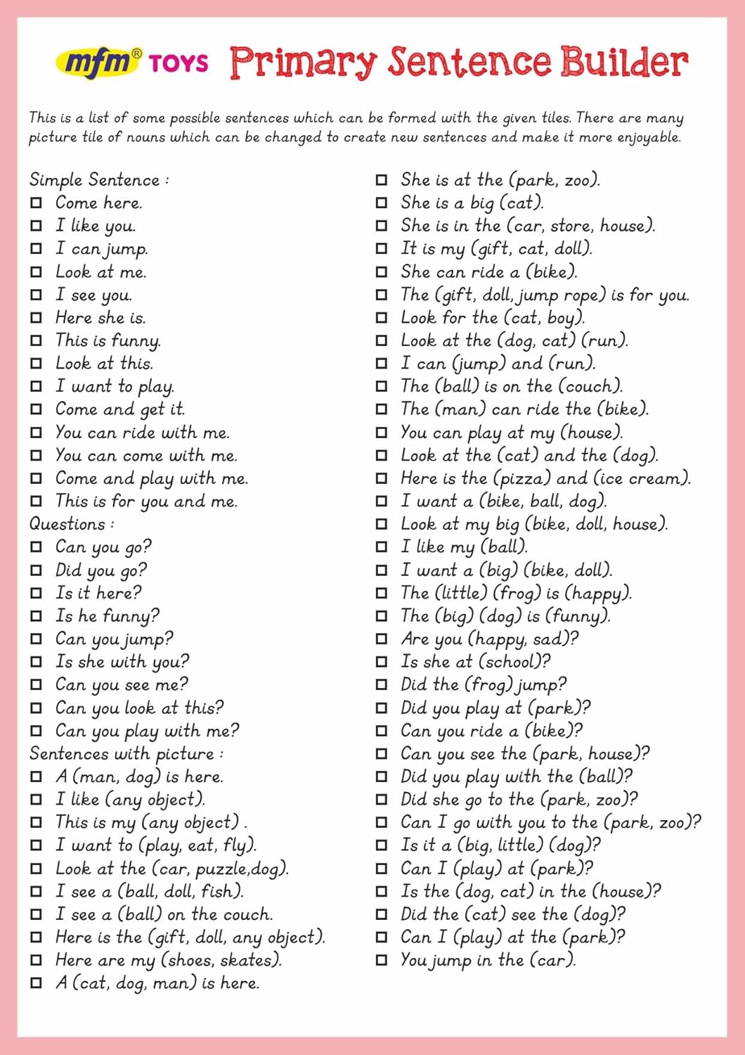 - Little learners practice creative sentence-building—with magnetic pieces they can use again & again!