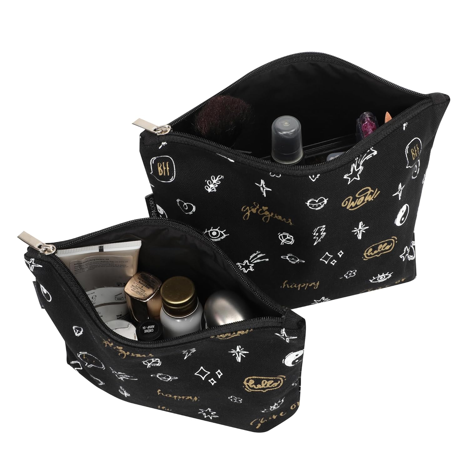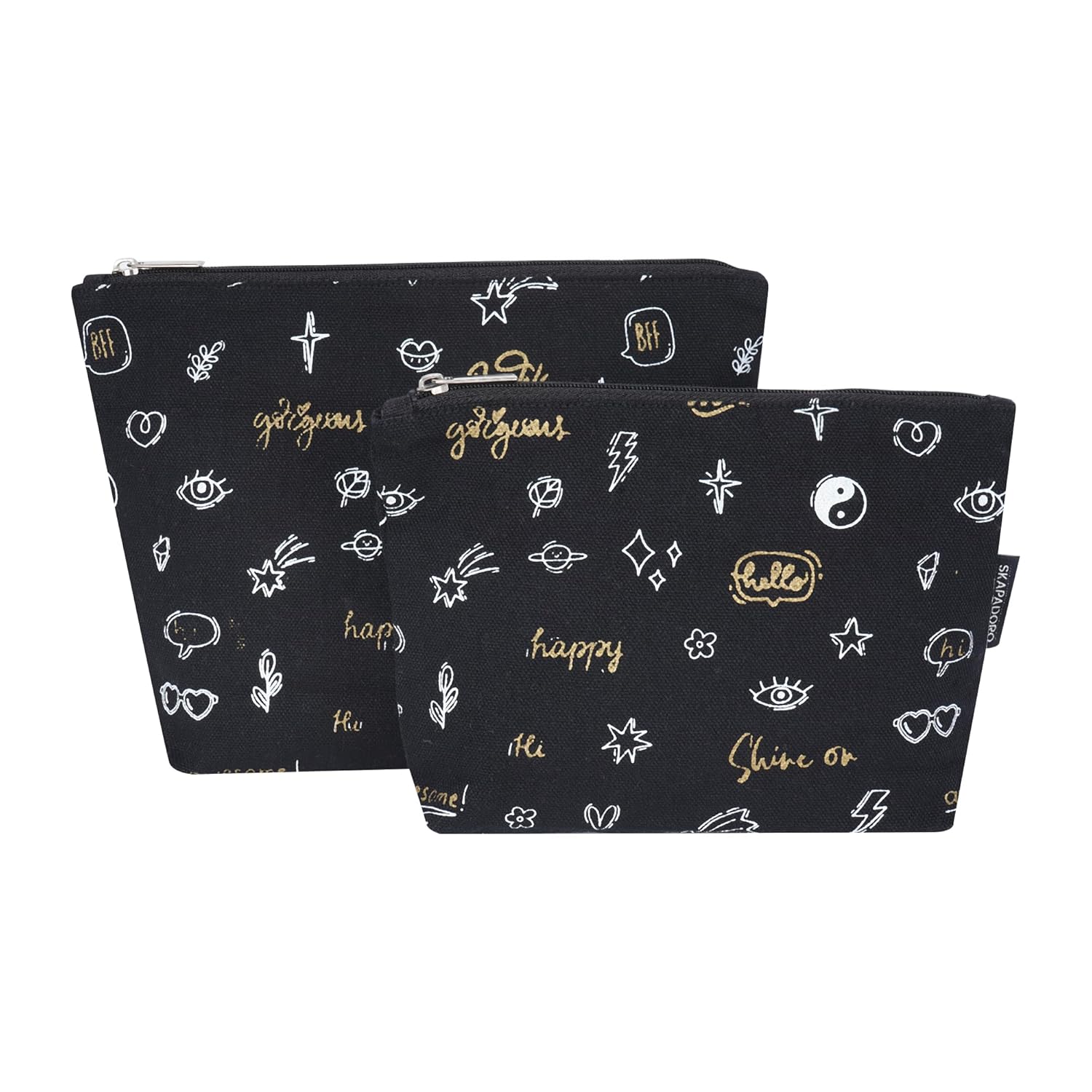 Skapadoro Travel Organiser Multipurpose Pouch Kit for Girls Women, Cotton with PetBottle Recycled Lining Set of 2 - Make-up Pouch, Toiletries Kit (Black)