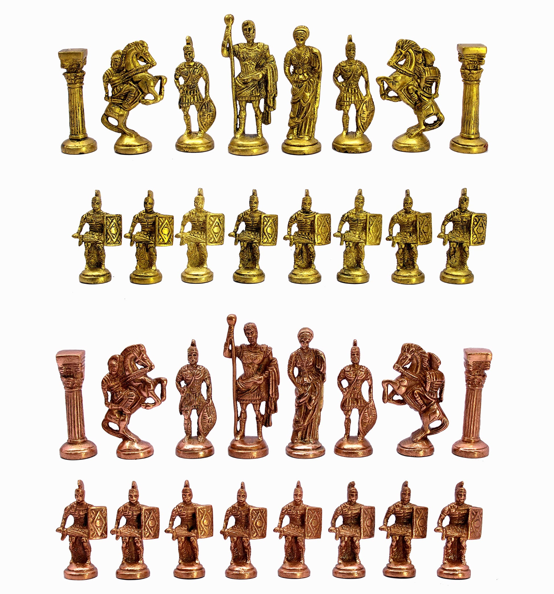 - 3.5" Roman -King is almost 3.5 Inch Height and Other pieces in proportion. This Chess set goes well with board sizes 14-16 inches.