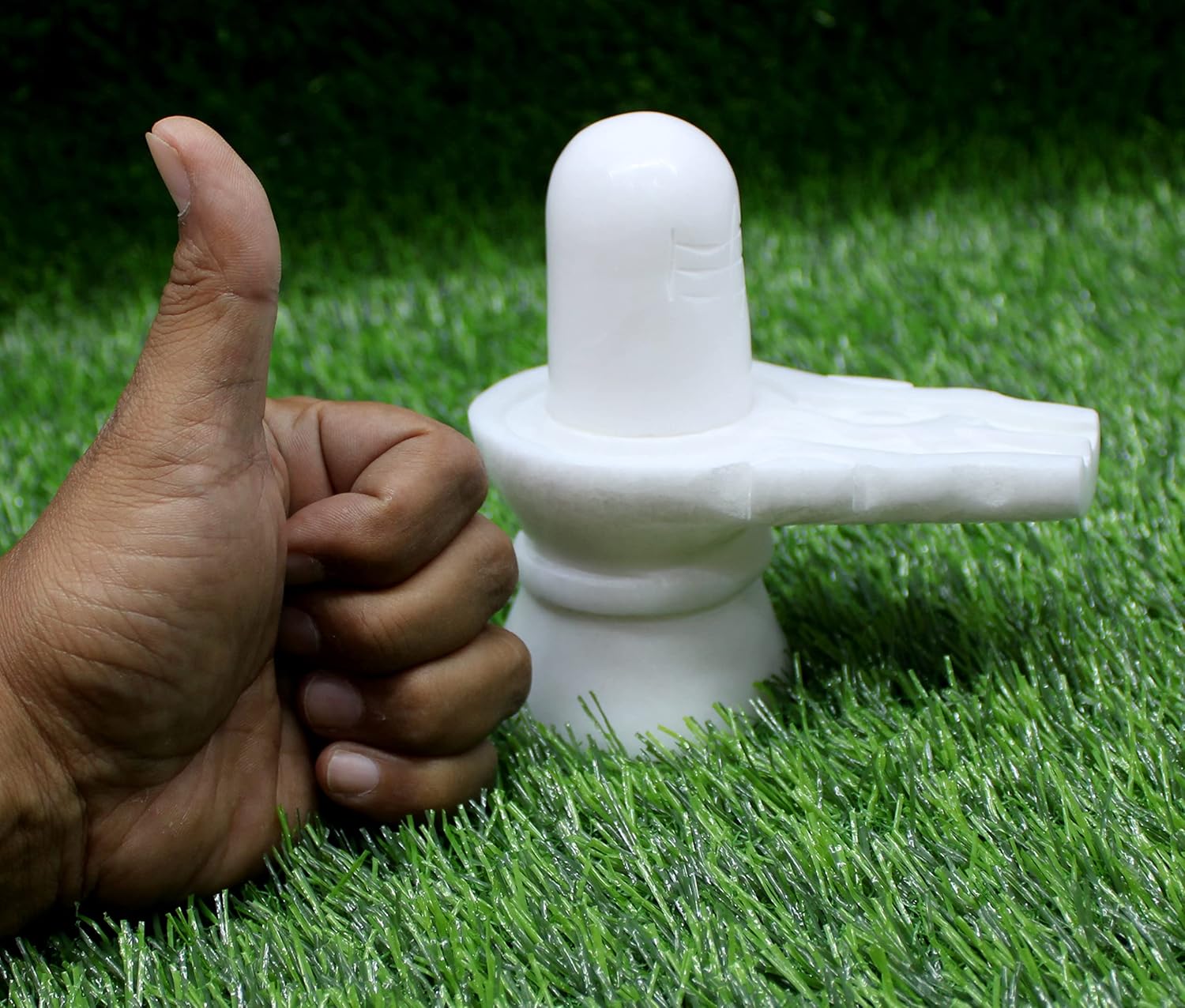 - StonKraft Handcrafted Medium size 5 inch Shiv Ling Idol/ Murti crafted in White Marble Stone by artisans.