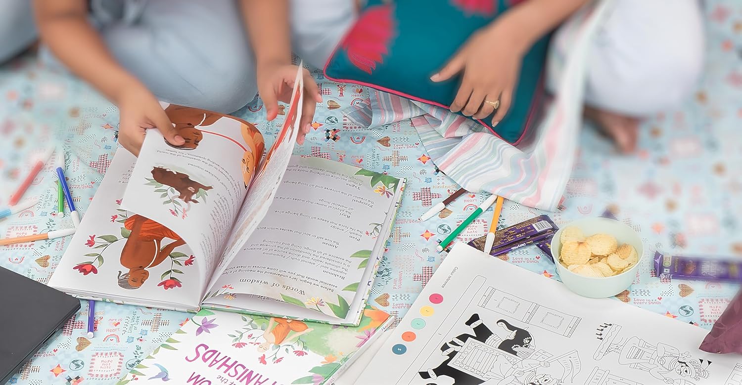 Embark on a journey through the rich tapestry of Hindu philosophy and mythology, exploring ancient texts like the Ramayan, Upanishads, Vedic Tales, and Akshar Akshar Eeshvar on Hinduism. Encounter brave princes, wise sages, gods, and goddesses as they navigate adventures, imparting lessons of bravery, self-discovery, morality, and balance. Delve into captivating stories filled with detailed illustrations, meaningful insights, and Sanskrit teachings, offering readers of all ages a profound understanding of life's virtues and the interconnectedness of the self with the universe. Through exploration, shared reading, and engaging activities, these books not only nurture literacy but also deepen wisdom.